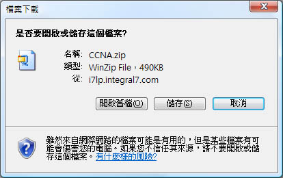 檔案下載對話視窗彈出,然後按 "開啟" 或 "儲存"。