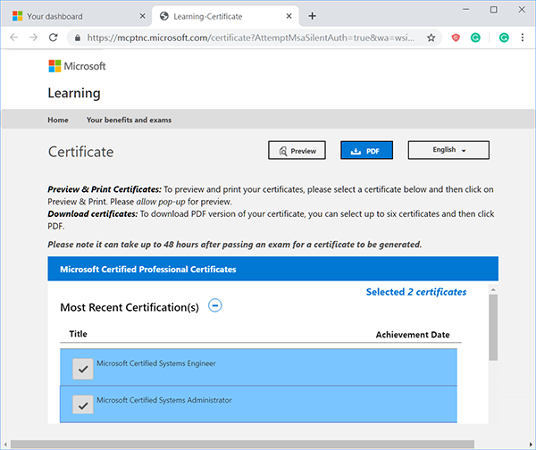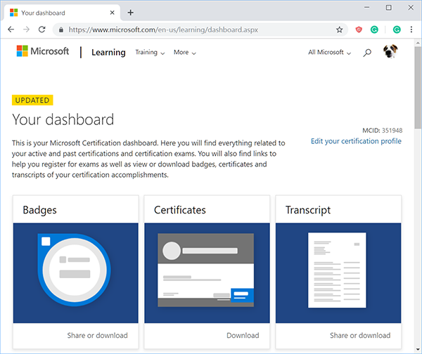 MCSA / MCSE 考試後,如何下載或購買證書?